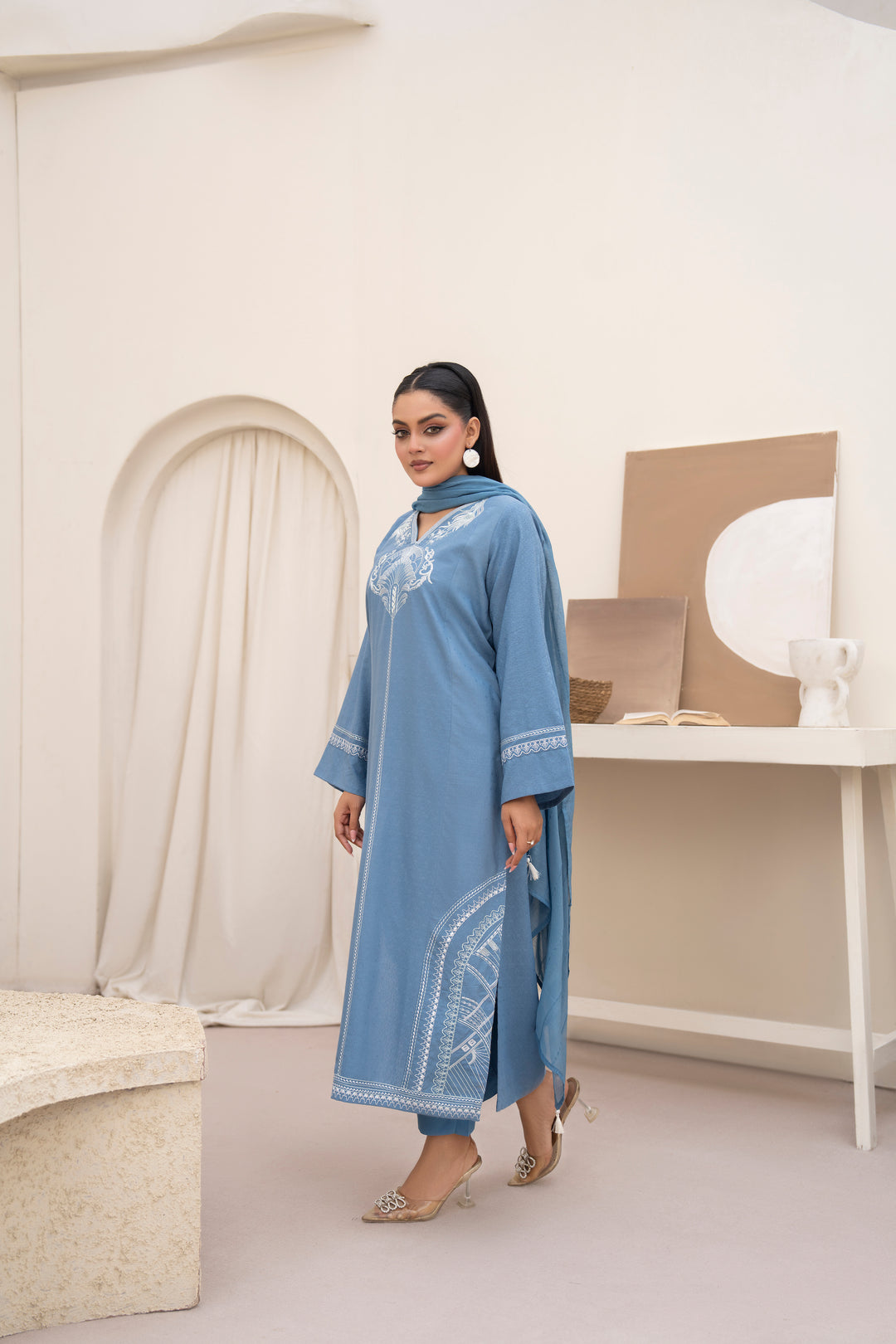 Denim Blue Embroidered 3pc