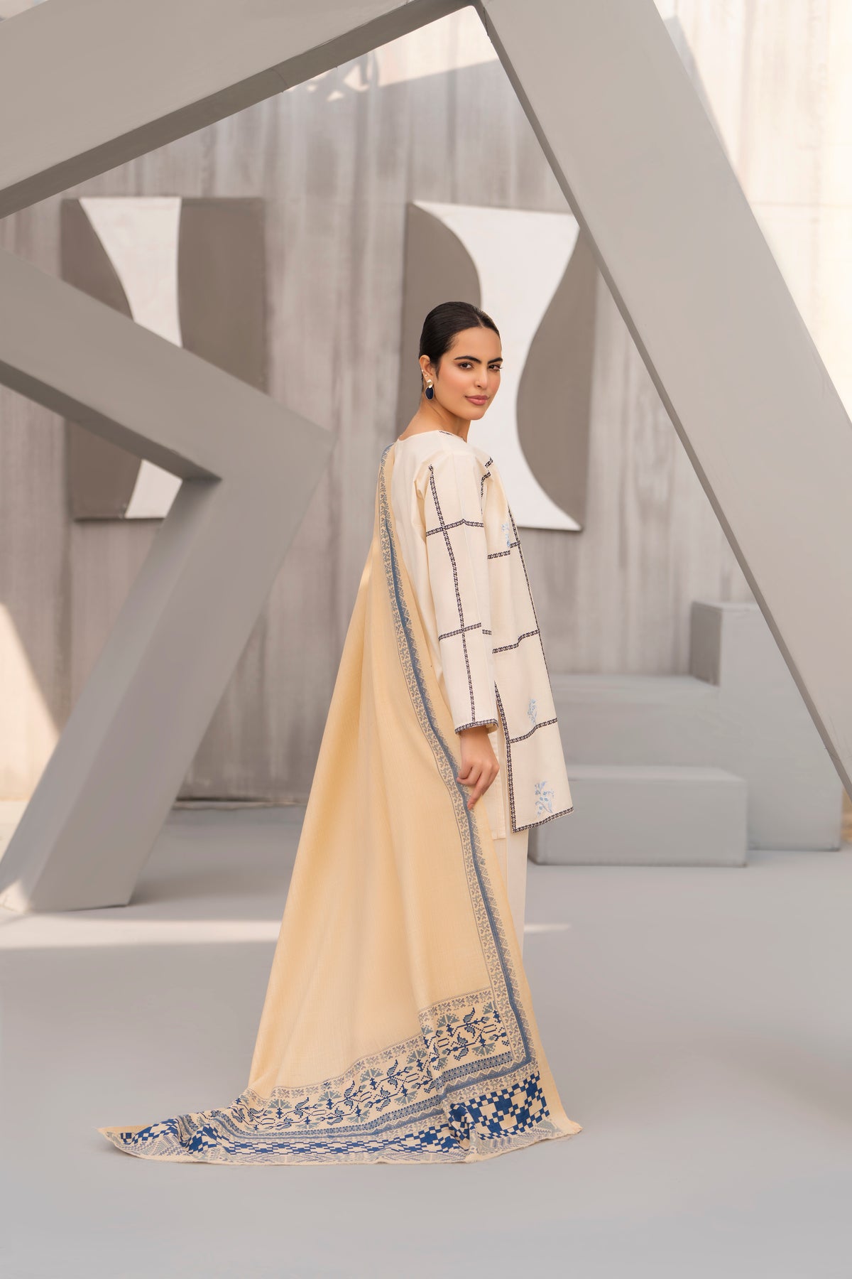 Off-White Hand Printed Shawl